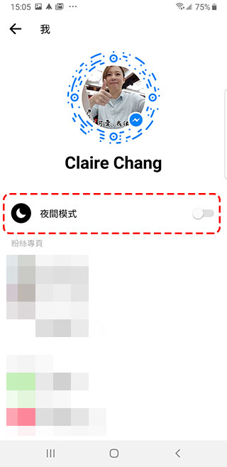 1. 開啟 Faceboook Messenger 手機應用程式,點選左上角自己的頭像以進入設定介面。