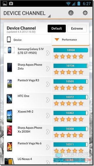 在跑分完畢後的主畫面往下拖曳會有「Device Channel」裡面是所有裝置的成績,大家可以用這個數值來看自己的裝置在全世界的手機中大概是什麼水準: