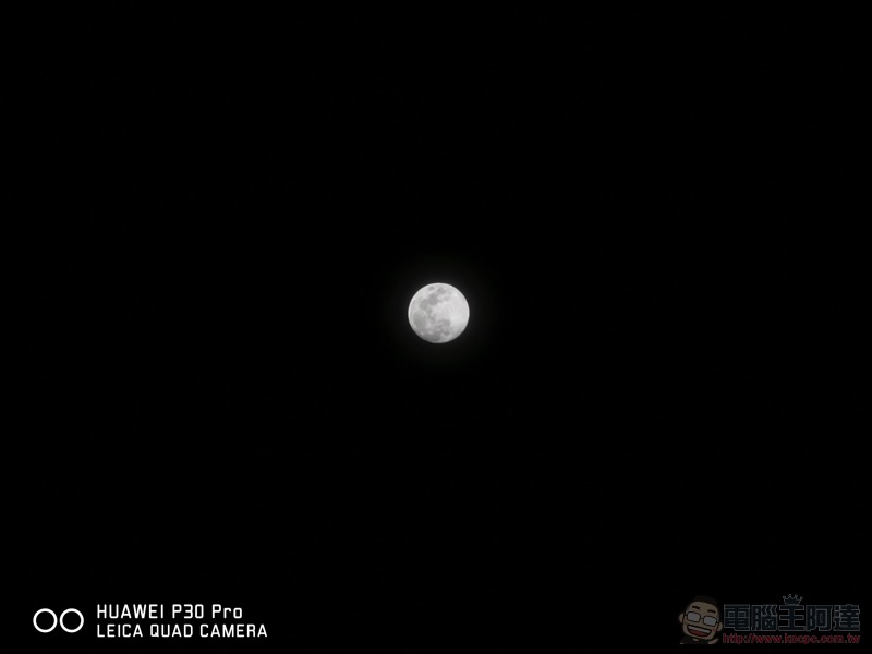其實單就 10x 望遠變焦的比較來看,P30 Pro 的畫質就已經是比較強了,至於有 AI 加持的超級月亮照片,那就更是看起來超級厲害了: