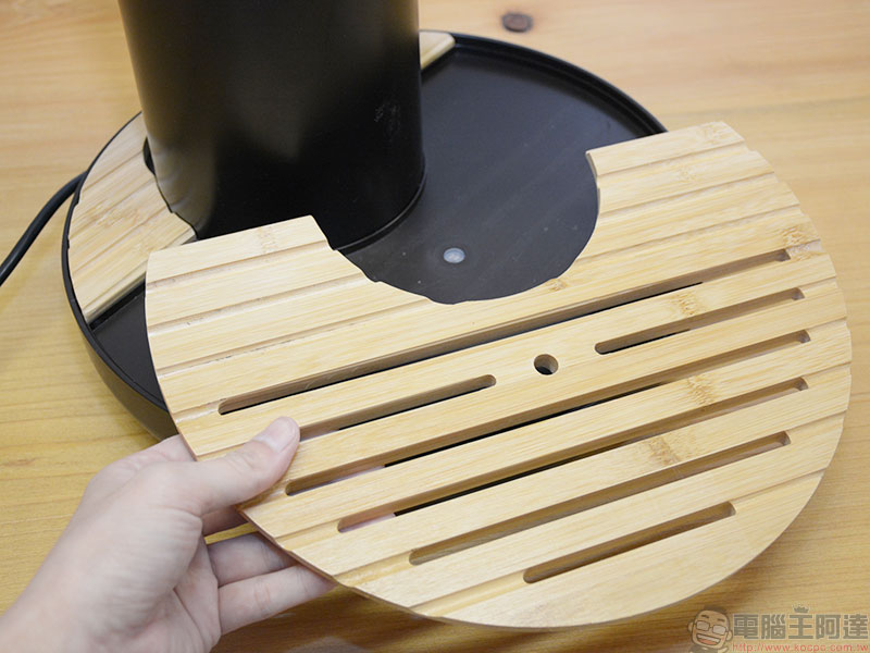 下方接水底座的上面以竹盤裝飾,雙層可清洗,不沾污、不溢漏。