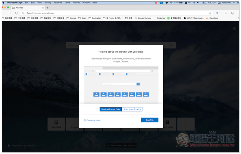 支援其他瀏覽器書籤匯入功能,它會自動抓取你 Mac 裡有安裝的瀏覽器,如:Chrome、FireFox,讓你能輕鬆無縫轉換到 Edge 使用。Safari 看起來不支援: