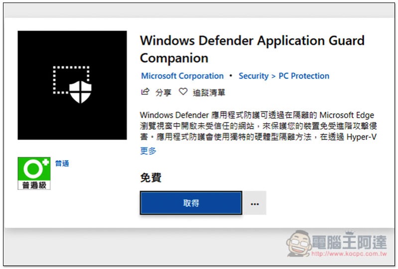 現在不論是進到 Chrome 應用商店,還是 FireFox Add-on 商店,都能夠找到這款 Windows Defender Application Guard 擴充外掛,下面我會以 Chrome 版作為範例。按右上角 “加到 Chrome“: