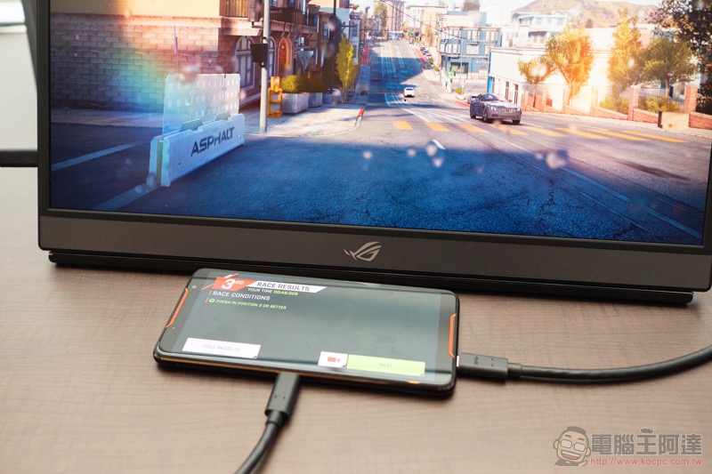 ▲圖:ROG 可攜式電競螢幕當然要接一下 ROG Phone 來使用啊(無誤)。