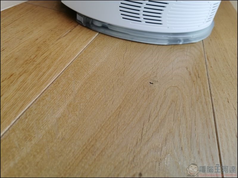 ▲大概就是地面微濕的程度,木質地板也不必擔心會太多水分,不過如果是卡地面的頑垢可能還是需要使用者自己手動先刮起再拖地的效果會更好。