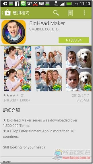 首先在Play 商店或App Store上搜尋「BigHead Marker」就可以下載,iOS版有免費版,Android平台則只有付費版本(一美金):