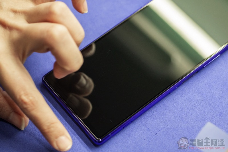 不愧是專為 Xperia 1 打造,手機正面螢幕的孔位也都開得非常精準,玻璃保護貼的手感更是滑順好用: