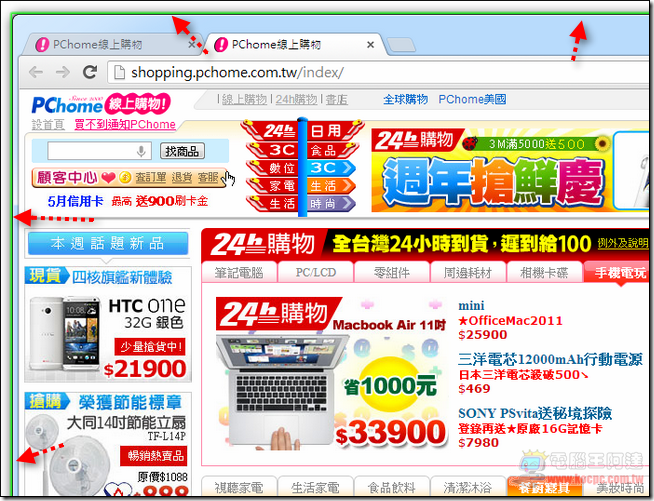 往後如果要到PCHOME網購物品時,只要執行PCHOME購物的選項,Kaspersky PURE 3.0就會為您開啟一個安全防護的網頁視窗: