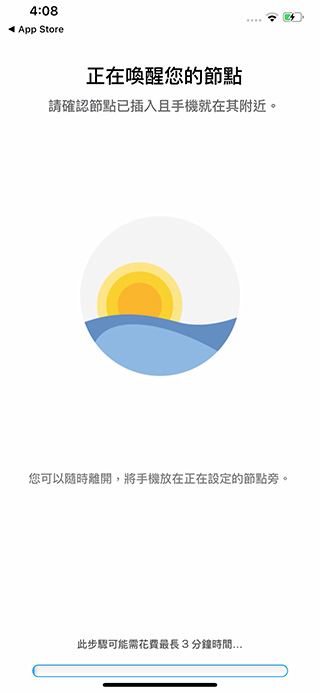 按下確認下一步之後就等待他自行搜尋即可,如果你真的搞不懂架設的環境也不用擔心,基本上到這一步,只要這個無線基地台連接的方式可以讓他連上網路,等久一點,手機端的 APP 還是能連上線,你所用來進行設定的 iPhone 未必要和這個無線基地台處於同一個網路環境,手機本身走 4G 訊號也能完成設定。