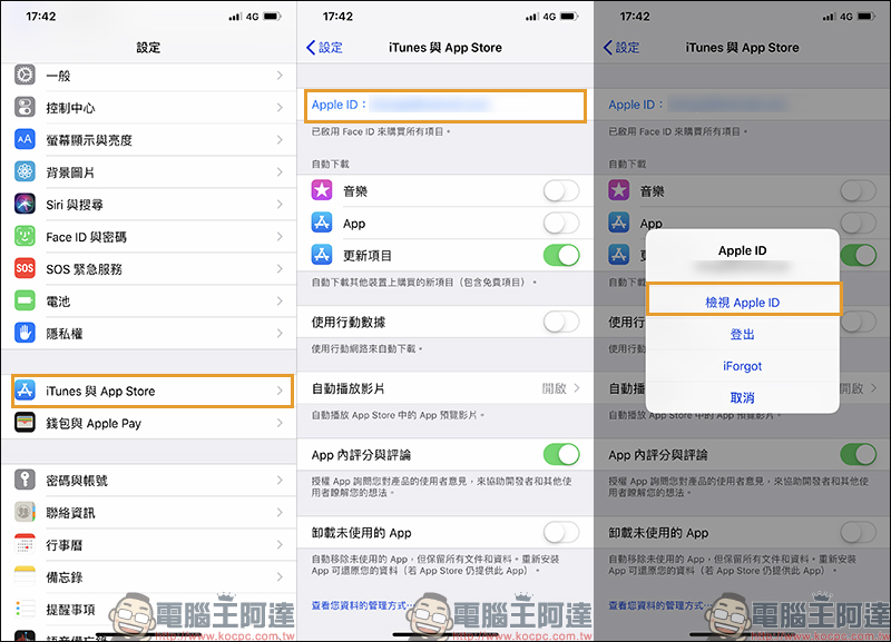無論是一個月免費試用或四個月免費試用的 Apple Music 會員,假如擔心到期後自動被延長會員資格,進而導致需付費訂閱的問題。那麼這裡也簡單分享 iOS 取消訂閱服務的方法。首先前往設定找到「iTunes 與 App Store」,街著選則上方的 Apple ID 並選擇「檢視 Apple ID」:
