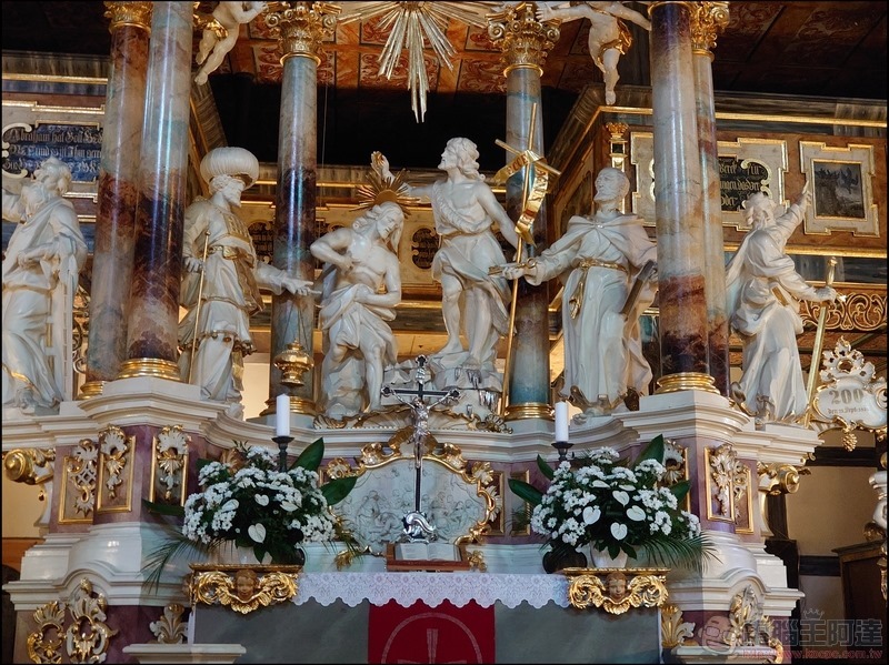 裡面金闢輝煌相當漂亮(來歐洲就是看教堂、看古堡、看風景…),超廣角構圖蠻震撼的: