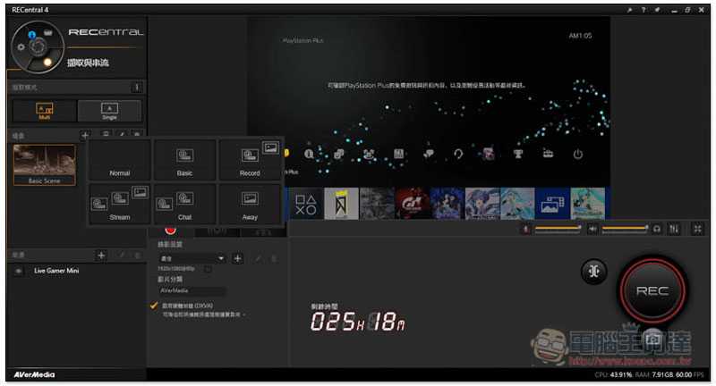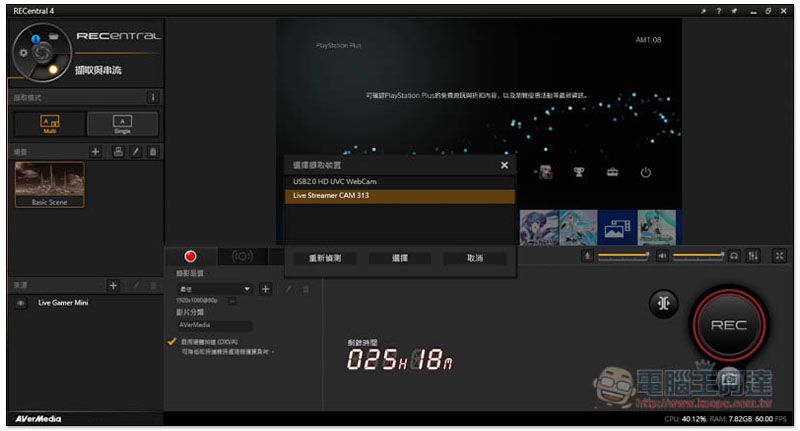 這次實況大禮包的三個成員全部都是 USB 介面,GC311 也不例外,符合 UVC 規範所以隨插即用也能兼顧畫面擷取功能,雖然體積很小,但是依然可以獨立進行 H.264 硬體壓縮降低主機的負擔,建議一定要搭配RECentral一起使用,可玩的空間會變得很廣。筆者用預設的錄影功能錄製 PS4 Pro 的影像,表現也很流暢,實際錄製出的效果如下: