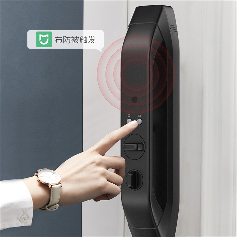 如果出外旅遊等情形會長期無人在家,只要透過 App 開啟防盜功能,如果期間有外人試圖從內部或外部開鎖,鎖具會立刻發出長達 15 秒的警報聲,並同步推播訊息至用戶的手機 App :