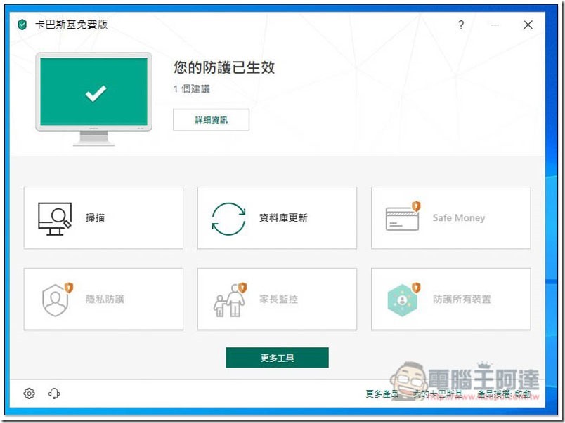 說到卡巴斯基,應該沒有人沒聽過吧?一款相當知名且老牌的防毒軟體,除了需付費的專業防毒軟體,也有推出提供基本防護的免費 Kaspersky Free,可協助抵禦最常見的威脅,如:病毒、危險網站與檔案等等。支援繁體中文語系,且介面設計相當簡潔,非常容易上手,免費版有的功能就兩個,「掃描」與「隔離或刪除病毒」,其他相關防護必須升級專業版(如:網頁、駭客攻擊等等),也有提供排程掃描選項,可定期自動全面掃描你的電腦,而對於擔心玩遊戲拖垮效能的朋友,它有提供一個遊戲模式,打開之後只要偵測到你正在玩遊戲,所有工作都不會被執行,也不會顯示任何通知。免費版需註冊卡巴斯基的會員才能使用。