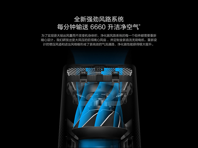 為了實現更大的輸出風量的前提下不增加機身體積,工程師設計全新的風路系統,以更大風壓的後傾離心風扇、定製全新直流無刷馬達,最終打造出這套每分鐘輸出 6,660 升的全新風路系統:
