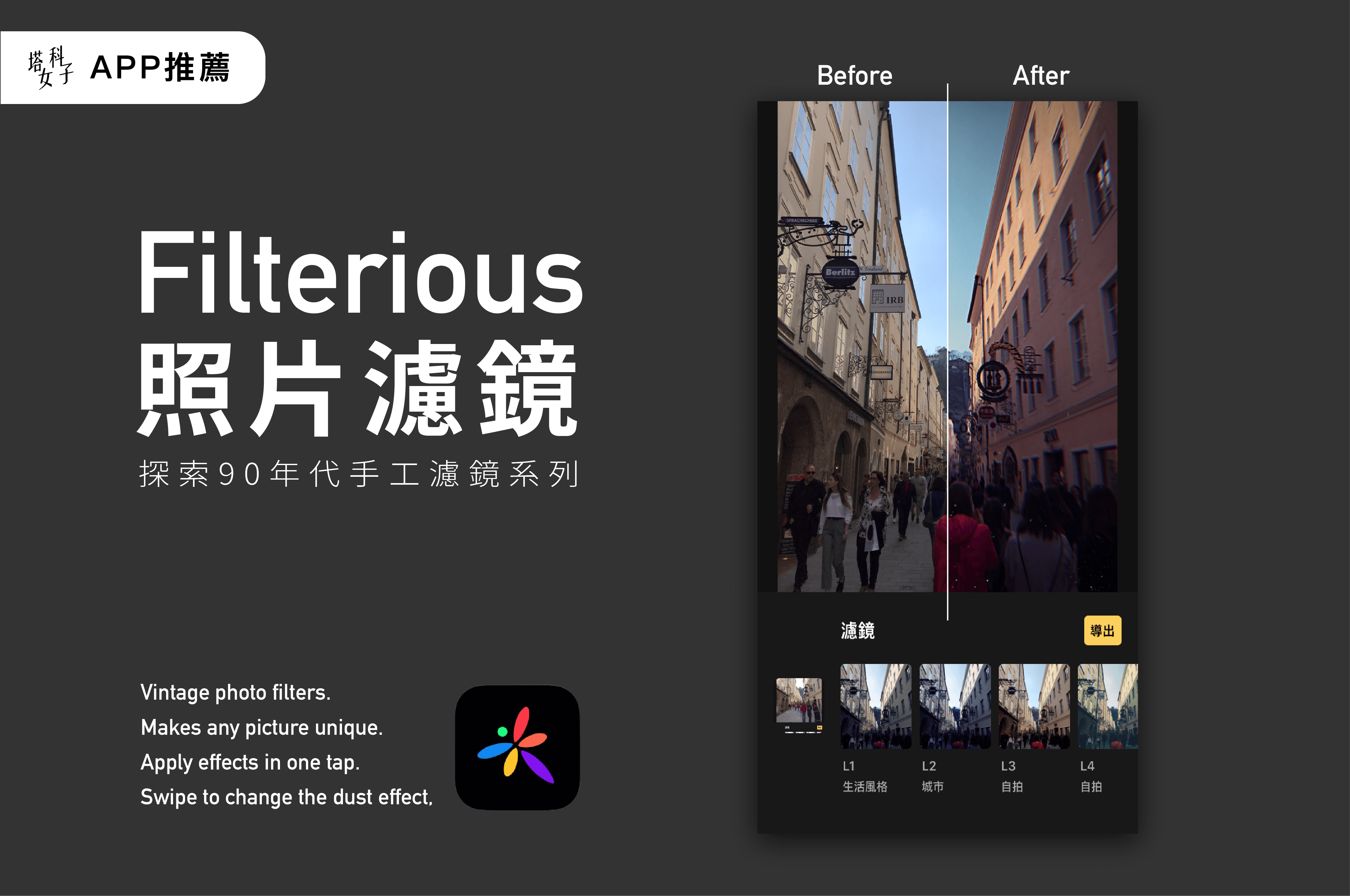 以上是為大家介紹的復古濾鏡 APP – Filterious。操作很簡單,不需要懂怎麼調整數值,也能讓照片看起來很復古很專業!