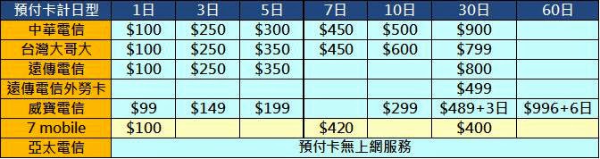各家電信業者預付卡上網資費詳細內容與申請方式, 請詳見以下各官網連結:.