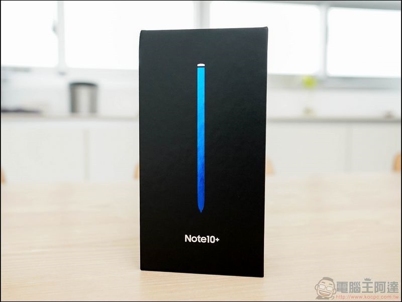 這次 Galaxy Note10 系列共有兩款,分別為 6.3 吋的 Note10 與 6.8吋的 Note10+,主要的差異在於螢幕尺寸以外,電池(3500 v.s 4300 mAh)大小、記憶體容量(8GB v.s 12GB)、解析度(401 v.s 498 ppi)、重量(168 v.s 196 公克)與一顆 VGA ToF 鏡頭,剩下的所有功能都完全一樣,連相機配置與處理器規格也都相同,當然價格也有所差異(Note10+ 肯定貴一些XD)。而這次阿達要開箱的就是 6.8吋的 Note10+,在外盒上就標示了觸控筆的顏色,我手上這款就是本次主打的星環銀配色搭配藍色觸控筆: