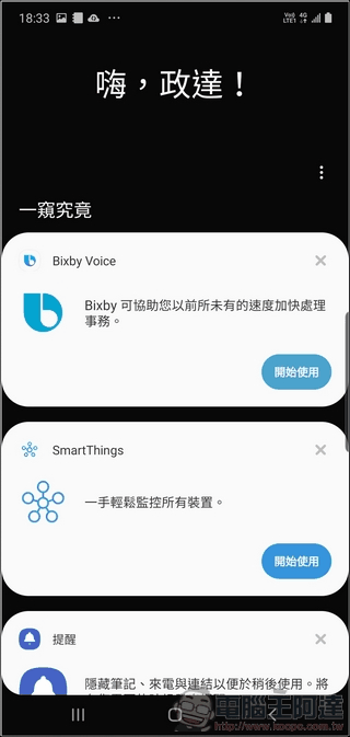 主畫面最左側的 Bixby Home 提供各種新聞與常用功能,內建的人工智慧會讓系統越來越適合您日常使用習慣: