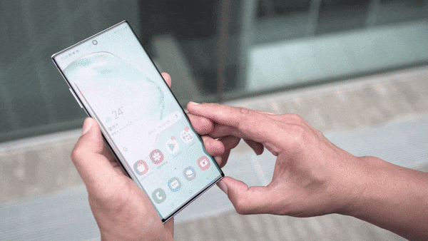 Note10+ 一樣採用曲面螢幕設計,這樣也讓左右兩側的邊框在視覺上變的更細,營造出更大螢幕佔比的視覺效果: