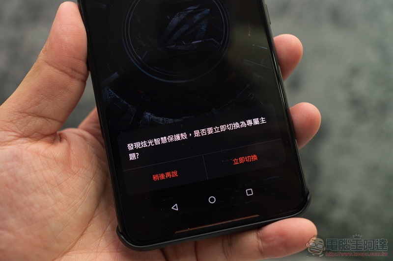 由於具備感應功能的關係,華碩也針對軟體功能方面提供了專屬的主題,會在感應時詢問是否要進行切換:電競手機的完全體 ROG Phone II 大全套 開箱 動手玩(評價 評測 跑分) - 電腦王阿達