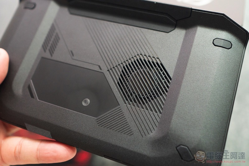 底層則是有專用的保護殼 — 沒錯,想對於上次直接夾上手機使用的方式,這次 ROG Phone II 改用專用保護殼來進行連接,除了使用起來更穩以外,也比較不用擔心會脫落,也對於手機有更好的保護性:
