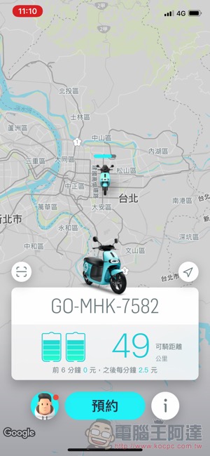 App 會顯示使用時間並可查詢全台灣的換電站位置,也可以透過手機導航到換電站。官方也表示,他們的行控中心也是會派員去幫路邊低電量的車子換電的,所以不用擔心會一直借到低電量還得自己去換電的車:
