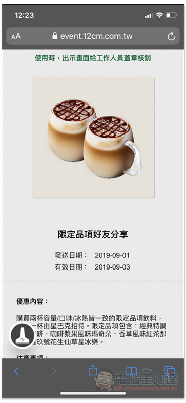- 至門市兌換時,需出示手機優惠憑證畫面供門市夥伴蓋章確認已兌換。若因消費者手機網路連線問題或其他個人因素,導致無法兌換優惠,本公司恕不負責。