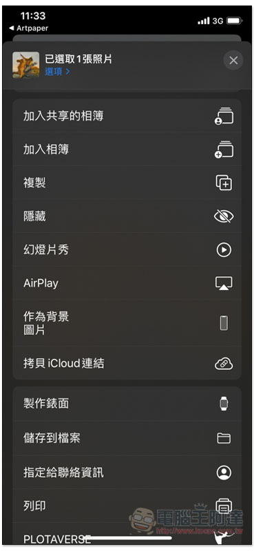 接著這畫面就會儲存在你的 iPhone 相片裡面,它沒有提供一鍵設置功能,需要手動設定: