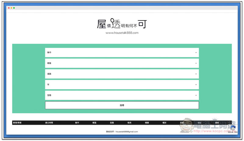 進到屋透可首頁後,就選擇你要查詢的縣市、轄區、道路、年以及房屋型態: