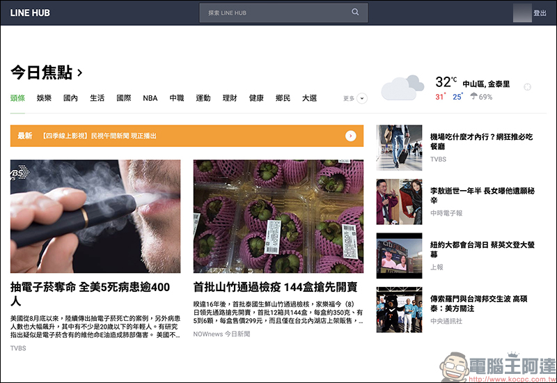 首先,原本在 LINE DOAY 的新聞與天氣功能,在 LINE HUB 有了更簡潔好閱讀的介面: