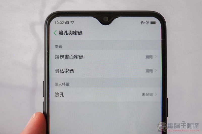 OPPO AX5s 並沒有指紋辨識機能,但有提供基本的臉部辨識生物解鎖功能: