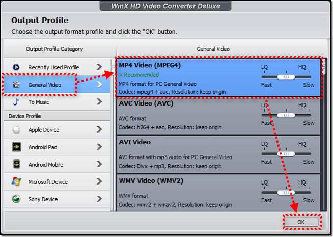 本圖為轉成MP4格式,確定格式後點擊「OK」: