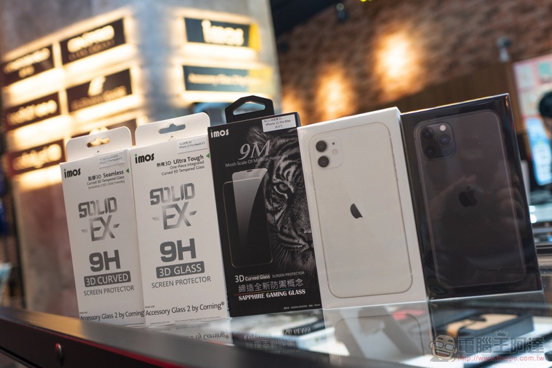 imos 依然提供了多種玻璃保護貼供 iPhone 11 系列的消費者選擇。最簡單的依需求,如果你想要的是幾乎滿版的全覆蓋的螢幕保護貼手感,那麼可以考慮 NT$1,590 的 imos 熱彎 3D 滿版康寧玻璃保護貼(上圖右);要是想要極致硬度防護的,則是可以考慮最左邊的 imos 藍寶石點膠滿版玻璃(價位分別為 11 NT$2,288 / Pro $2,188 / Pro Max $2,388)。