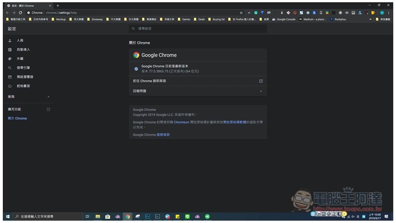 開啟 Google Chrome 之後,進到右上方功能選單的說明 –> 關於 Google Chrome,如果你的還沒更新,就會出現下方自動下載更新的畫面: