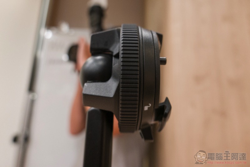 除了快扣機制外,雲台本體將一般腳架上的總要摸個老半天才能碰到,而且還不太確定到底是鎖定哪個方向的小旋鈕,改成了環繞雲台四周的圓形蜁環設計 — 鬆開即可進行全方向的位移,鎖緊也相當穩固。更因為力矩較大的關係,更輕鬆就能完成固定: