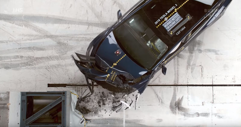 Tesla Model 3 前方並沒有引擎,因此碎裂時只有鋼鐵與鋁,這可有效讓乘客遠離危險,從這份 IIHS 測試報告中的假人圖可以說明,不論是駕駛還是乘客,全身都顯示綠色,代表全保護到: