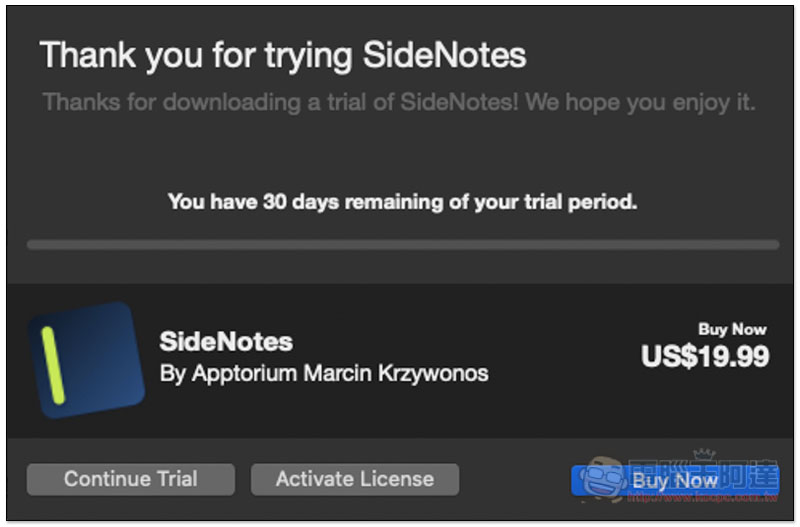 另外這套不是完全免費的工具,但有提供 30 天試用期,還蠻長的,喜歡可以考慮,點選 Continue Trial 繼續試用: