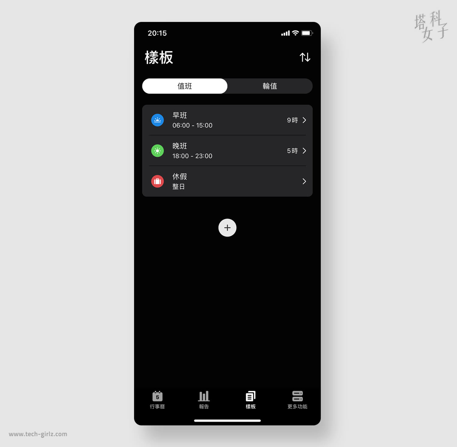 切換到樣板這個分頁,這裡是所有你新增的值班班別,在這邊也能輕易編輯,編輯好後會直接套用到現有的行事曆上。