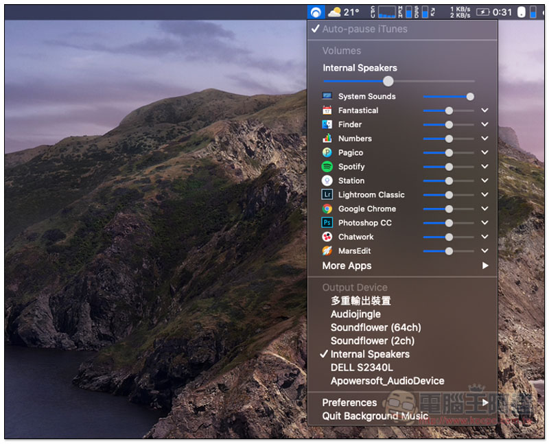 Background Music 提供針對單一應用程式進行音量調整的免費 Mac 小工具