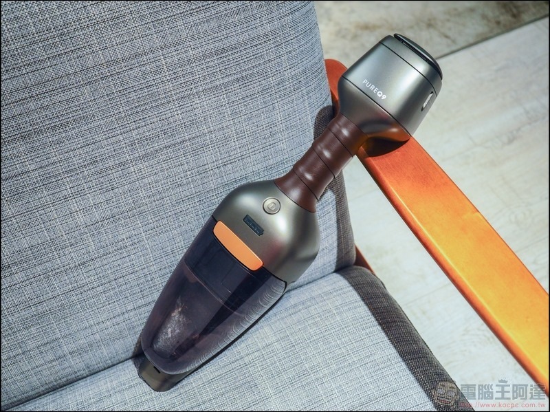 而剛剛一直說PURE Q9小型版,大型版到底是甚麼意思?這邊就揭曉讓你知道!沒錯,就是剛剛像雷神之槌的部分,可以取下當成更好移動攜帶的小型 PURE Q9,並且吸力不變,因為本體就是在我們手上這支Pure Q9 小型版呀: