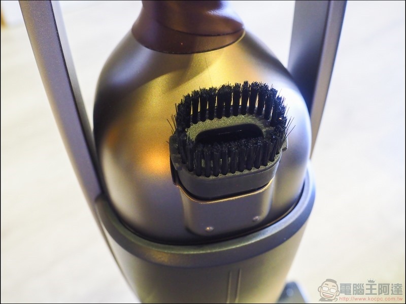PURE Q9吸塵器本體後方還有個小型刷頭的置放處,超方便、超貼心的啦: