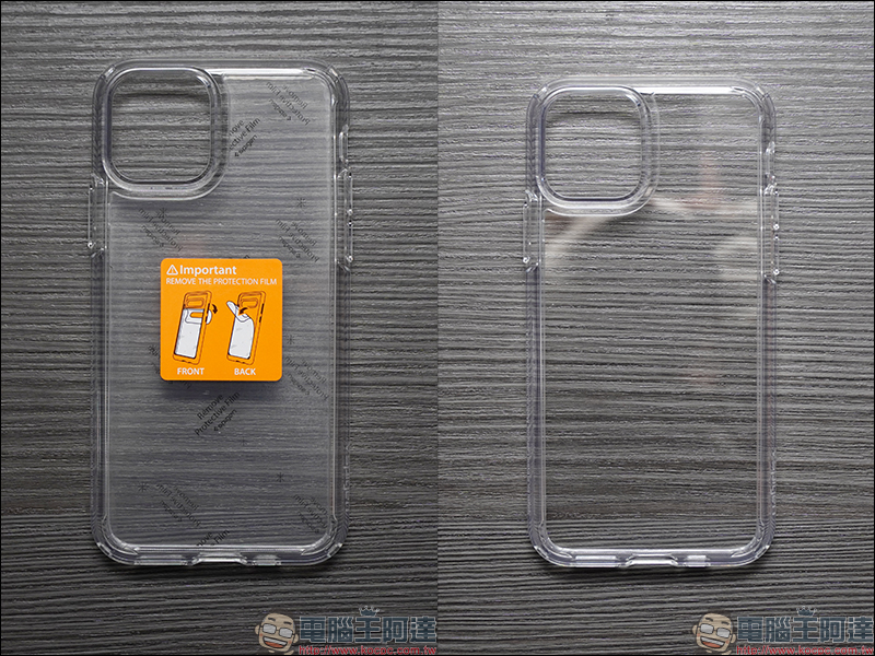 從外盒取出保護殼後,可以發現出廠時預先在保護殼的內外兩邊表面都覆蓋膠膜保護,讓保護殼在運送過程不需擔心保護殼受到損傷。當然,在正式使用前要將膠膜撕下來囉!