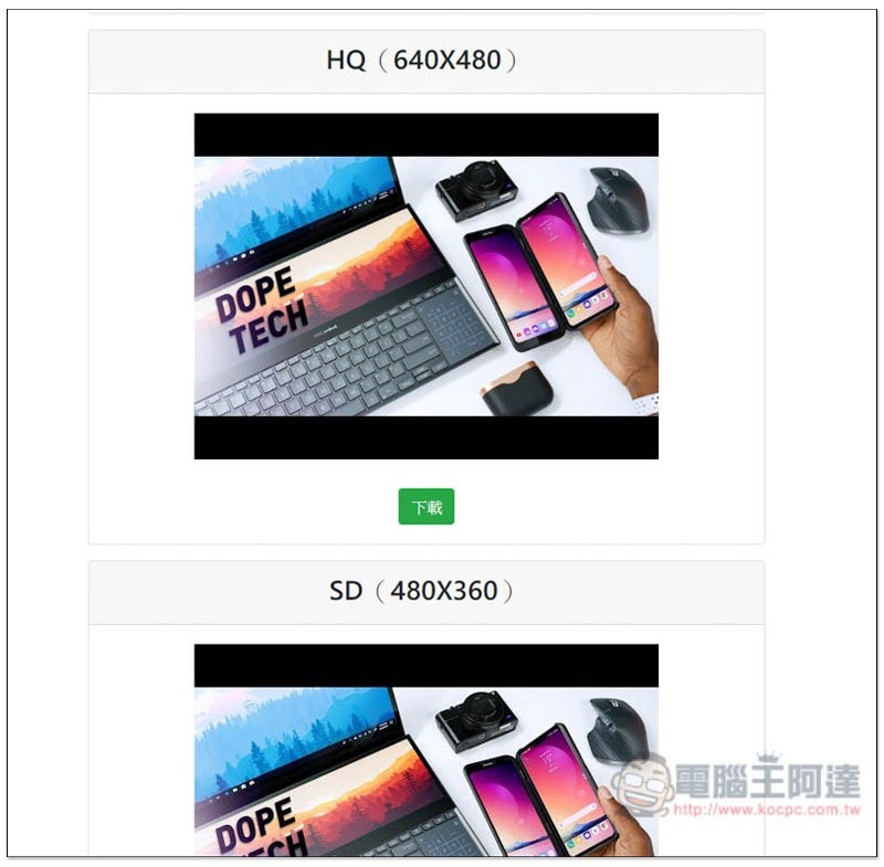 下方就會列出這部影片的封面圖,並依尺寸排列,按下方下載按鈕即可下載。基本上 HD 1280×720 高解析大圖都有,但 720p、480p 就不一定: