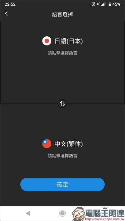 確定好擺放的位置與角度正確後,接下來就可以開始進行翻譯語言的挑選,如果你想要更換的話,就點選語言的字樣,就可以進行語言的挑選。