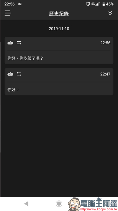 如果未來使用的次數一多,好像會有點難判斷哪個是你要的內容?但其實從標題上的圖標,大概就可以判斷這則內容是使用哪個功能的,如果是雙向的箭頭就是使用翻譯功能,如果是一個方塊,就是使用會議模式,如果是麥克風的圖案,就是採訪模式,在這樣的小地方上的細節,就可以看到廠商其實蠻用心在處理的: