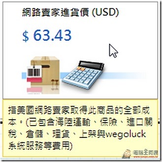 ↑網路賣家的進價,就包含了貨運、保險、關稅與weGoLuck的抽佣。