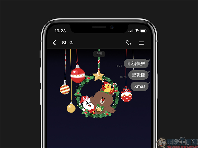 再過幾天就是一年一度的耶誕節了!今天開始共為期七天,只要在 LINE 聊天室輸入「耶誕快樂」、「聖誕節」或「Xmas」(不限大小寫)其中一組指定關鍵字,就會出現耶誕花圈熊大的聊天室特效。不過這項效果僅限於 LINE iOS 版與電腦版: