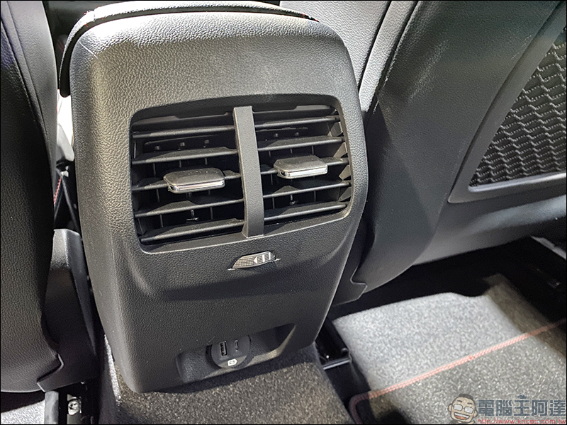 後座同樣配備後座冷氣出風口,不過在後座的充電孔規格從 12V 充電座改為 USB Type A+Type C 雙充電孔: