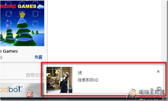 4.訊息的提示框改用Chrome的通知視窗,比起PC版的通知視窗來說,大上許多。