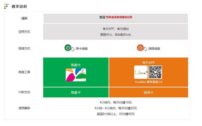 「會員相通」指的是既有會員不需重新註冊,費率也相同,且同樣適用轉乘、定期票與敬老票優惠,在網頁版的會員後台,能看到不需再另行註冊,便可同時查閱YouBike與YouBike 2.0的騎乘紀錄。